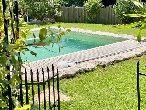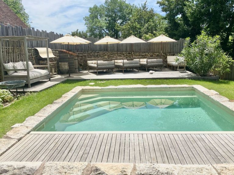 Plus loin, un bassin romantique se dévoile, promesse de fraîcheur et d’instants suspendus.