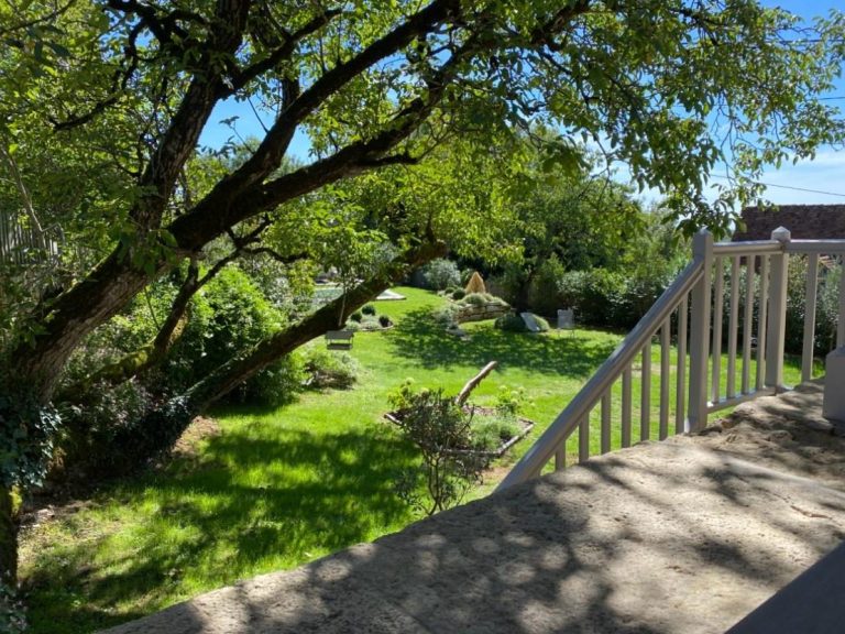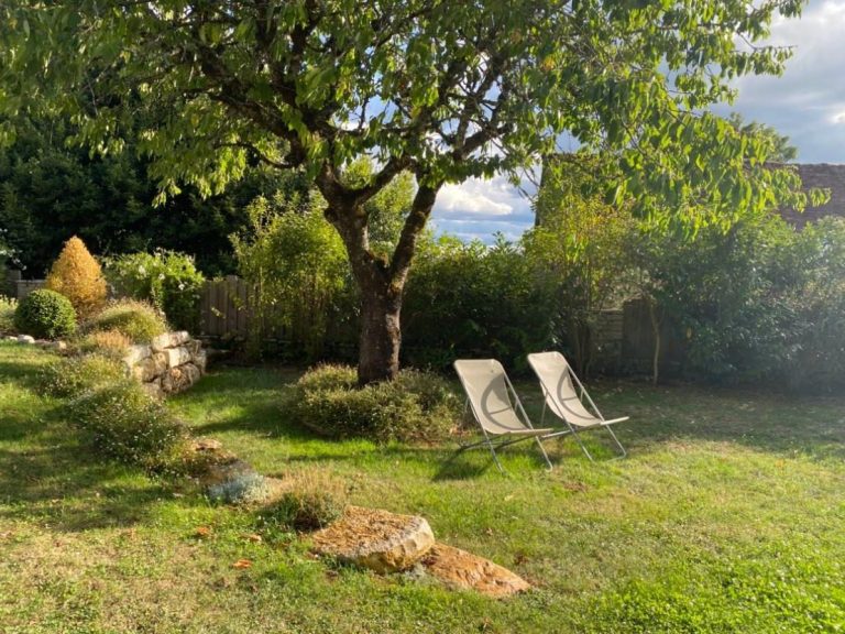Sous l’ombre d’un cerisier, le jardin invite aux rêveries.